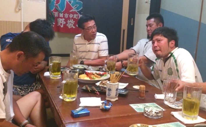 コンペ終了後は、居酒家的場にて反省会を行い、今週末から開幕する夏の大会の展望や