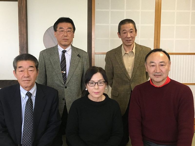 お集まりいただいたのは後列左からOB会長の阿部晋さん(鶴岡一中出身)、