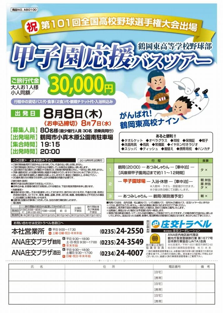 組み合わせが決まったことにより、庄交トラベルより応援バスツアーが正式に発表されました。
